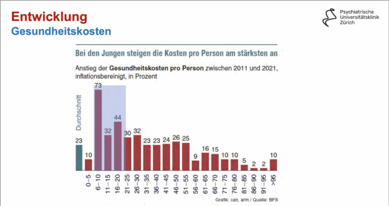 Geeignete Präventionsangebote für Kinder und Jugendliche können einen grossen Beitrag zur Senkung der gesellschaftlichen Gesundheitskosten leisten, da in dieser Altersgruppe die Behandlungszahlen und -kosten für psychische Probleme in den letzten Jahren stark gestiegen sind.