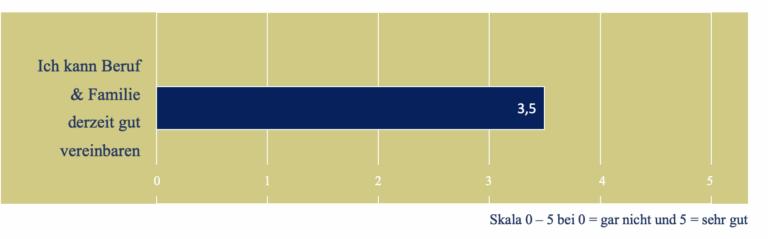 Bei der Einstiegsfrage «Ich kann Beruf & Familie derzeit gut vereinbaren» lag der Mittelwert der Antworten auf einer Skala von 0-5 bei 3,5.