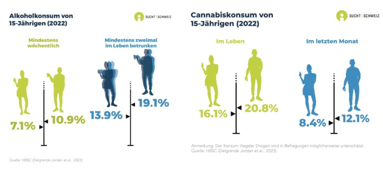 Aufgrund des geringeren Körpergewichts ist die Wirkung bereits geringer Mengen Alkohol stärker als bei Erwachsenen. Junge Menschen erleiden schneller eine Alkoholvergiftung und es kann auch zu Entwicklungsrückständen kommen, da sich ihr Gehirn noch in der Aufbauphase befindet. Ähnliches gilt für Cannabis und andere Substanzen, deren Konsum im Jugendalter zu irreversiblen Schäden führen können.